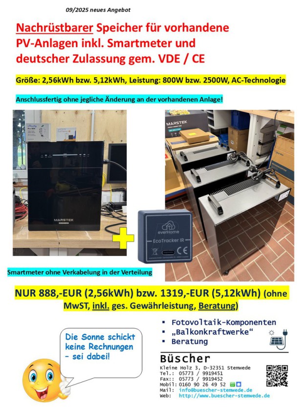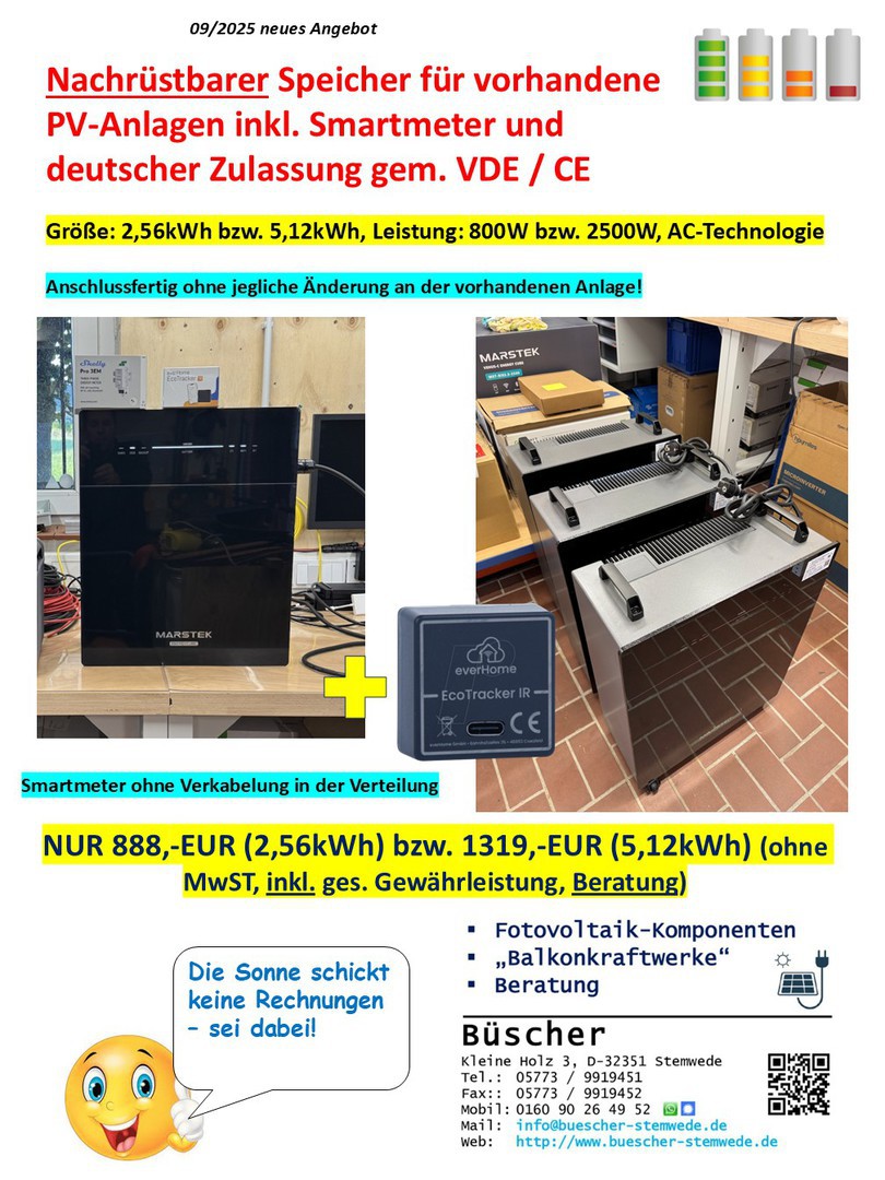 - Smartmeter für bedarfsgerechte Strom-Abgabe des Speichers und "Nulleinspeisung"
